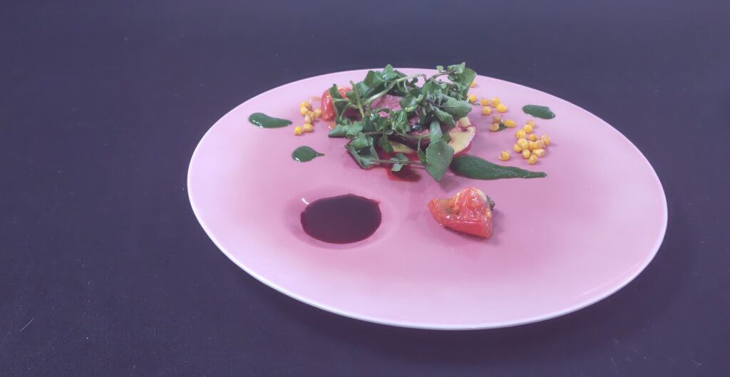 今回講師として登壇していただいた飯笹光男氏(「シェ・フルール横濱」オーナーシェフ)と弊会会員でもある菅原伯亮氏(「インターコンチネンタル 横浜Pier 8」料理長)はそのジビエ(鹿肉)を使用し、繊細で見惚れるような作品を完成。