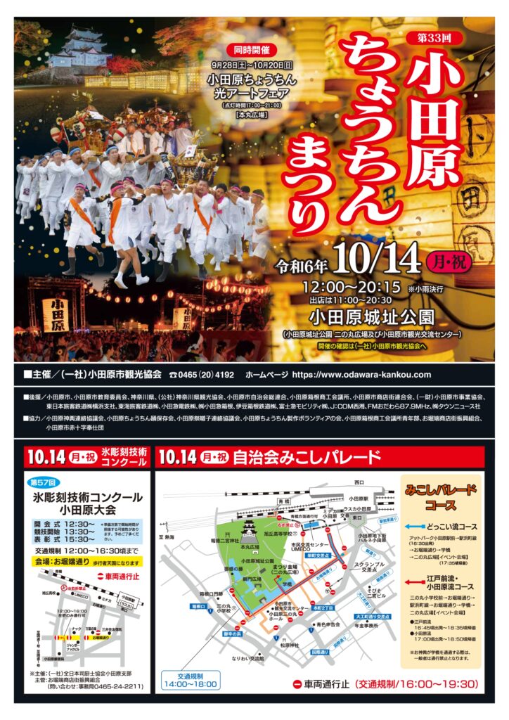 2024年10月14日(月・祝)に弊会小田原支部主催の第57回氷彫刻技術コンクール小田原大会が開催されます。当日は小田原ちょうちんまつりも行われており、街全体がお祭りの舞台となり終日楽しめる大イベントです。ぜひお越しください ※写真は昨年氷彫刻大会の作品